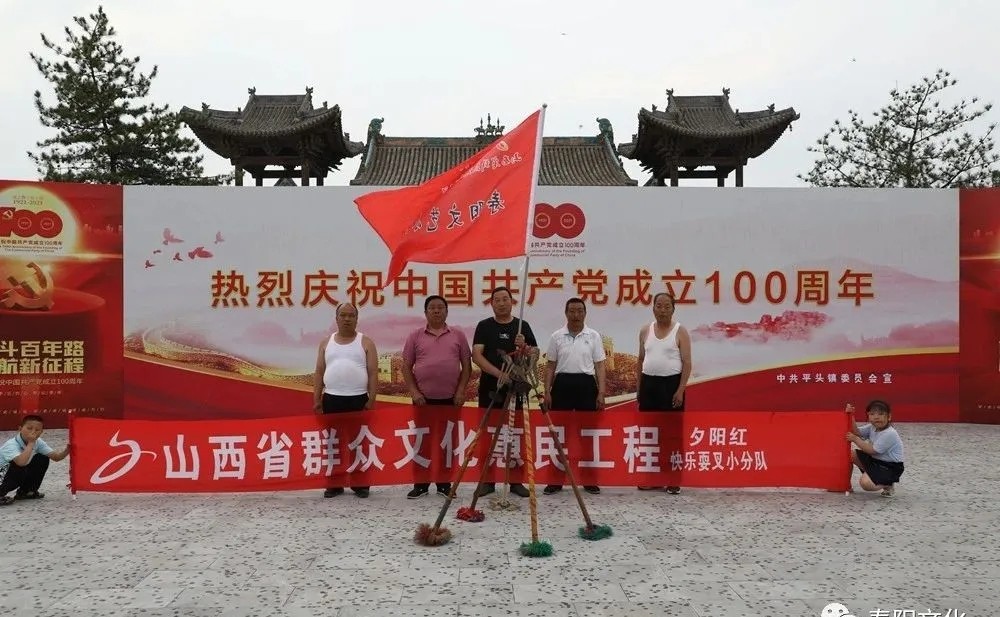 夕阳红快乐耍叉小分队成立于2021年年初,现有队员10余人,年龄最大的67岁,最小的51岁,成立以来队员们扎根乡村,勤学苦练,以强身健体、弘扬传统文化为己任,积极参加市县文化志愿者服务活动,深受广大群众欢迎。 铁叉起源于金元年间,到清代寿阳成立义和团时大为流行。据老艺人讲,寿阳平头的铁叉曾在清朝年间被特邀进入皇宫,专门为慈禧太后表演。 寿阳铁叉分大叉、小叉两种,大钗长约四尺余,手握部分铁锹把粗细,榆槐木棒制成,上端安有熟铁打制的铁叉,叉上套有铁环。下端系有红缨,用皮带夹层将红缨环木棒缝制成扁圆形状。武术演员结对表演,表演时铁叉在背、膊、颈、面部来回滚动,上下飞舞,精彩时演员会把铁叉抛上半空,待铁叉从空中旋转着直插而下时,演员昂首从头部、颈部乘势接住继续旋滚,惊险无比。加上铁叉带有铁环,随着节奏而红缨翻飞,刷拉作响,十分壮观。小叉长一尺多,演员手持两根木棒,来回飞转,倒手舞动,儿童亦可舞玩,表演与大叉有异。据老艺人赵河林回忆,耍叉的表演套路古代有50多种,现在能够回忆起来的有30多种。套路有:插花盖顶、二郎担山、海底捞鱼、凤凰展翅、金钩钓鱼、金鸡劈马、单双膀花、金丝缠蔓、蛇心背剑、金鸡串瓣,还有歪大瓮、打把儿、掏麻雀、高飞叉等等。 2010年申报为山西省非物质文化遗产代表性项目名录。