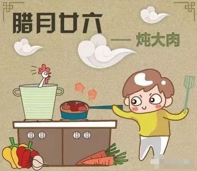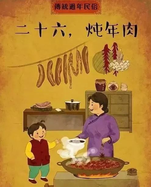 “腊月二十六 ,杀猪割年肉”,说的是这一天主要筹备过年的肉食。杀猪是杀自己家养的猪;没养猪的人家则到集市上去买过年吃的肉。在腊月二十六,春节传统民俗就是“割年肉”“炖大肉”。