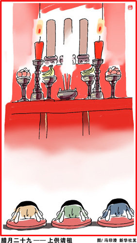 腊月二十九,上坟请祖上大供。对于祖先的崇拜,在我国由来已久。