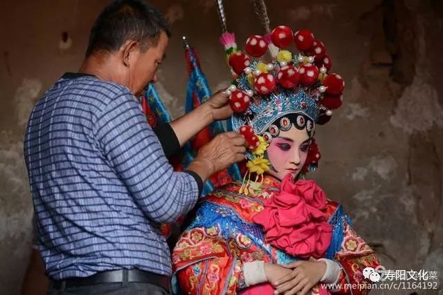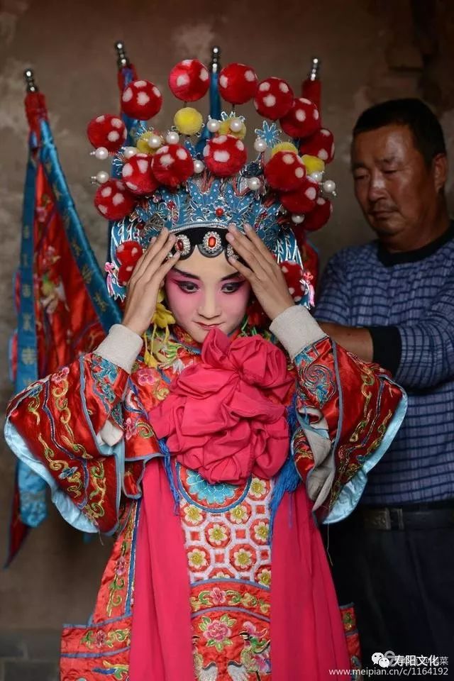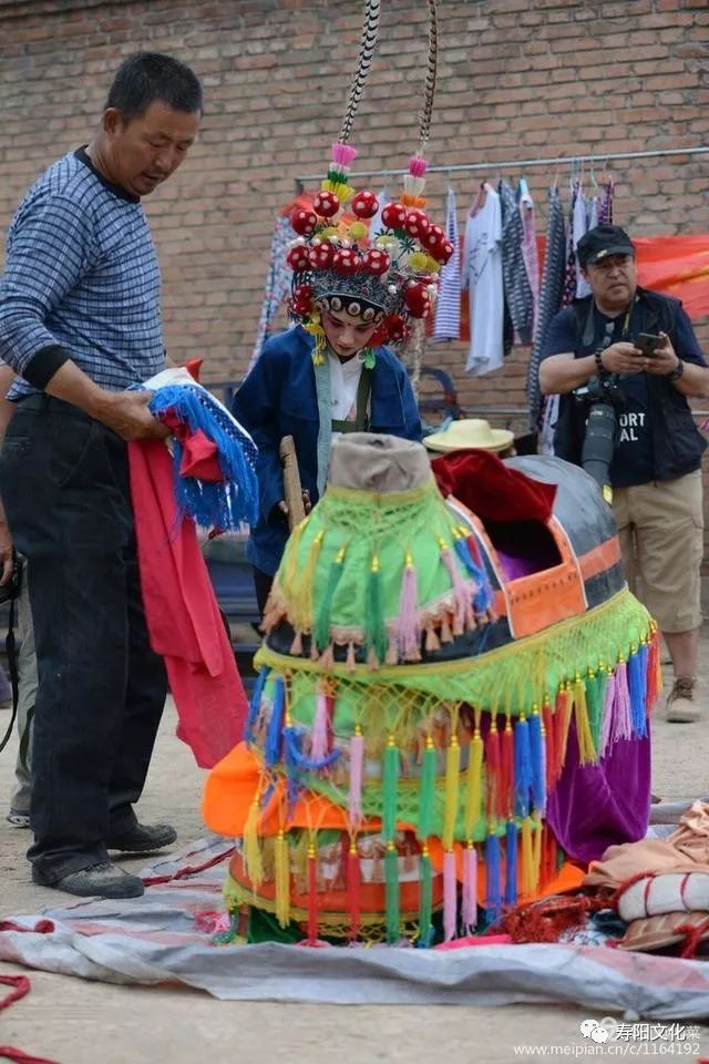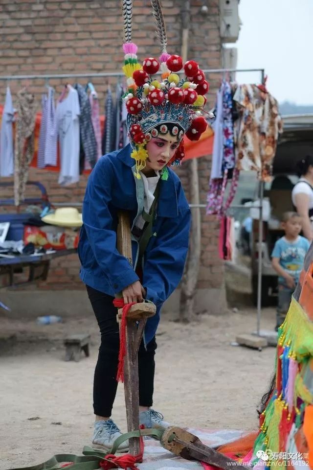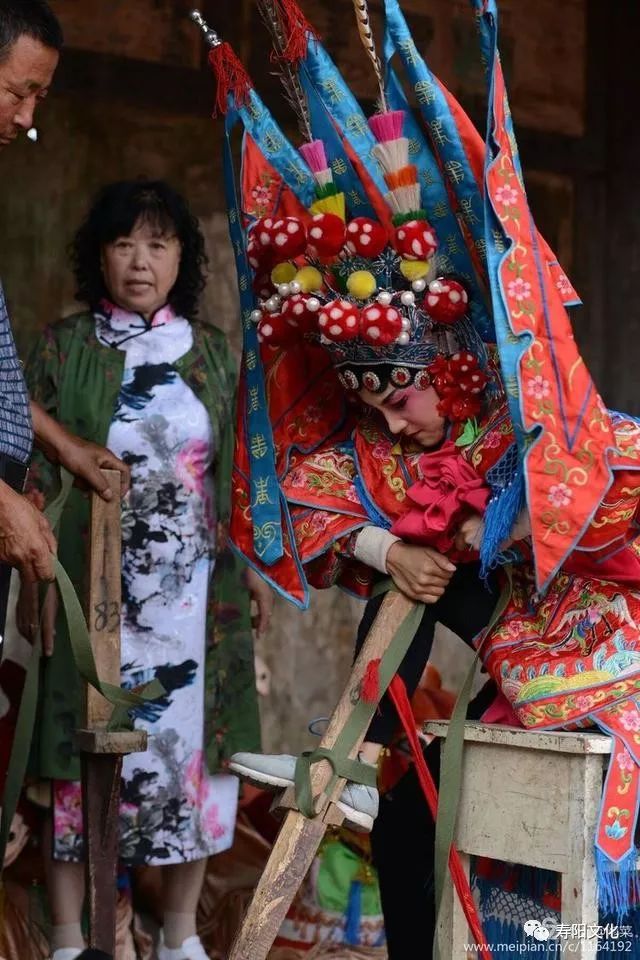 扶上马,固定好马头,整个演员身上负重,在20~30斤左右,一场演出,汗流浃背。