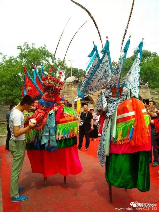 起源于明清的寿阳平头镇郭家沟村的竹马传统民间艺术,集高跷、竹马、武打于一身,造型高大,彩饰鲜艳,多有武场,少见文戏,刀枪剑戟拼杀,真善美丑自现,将民间喜闻乐见的历史故事、人物,展现于舞台。