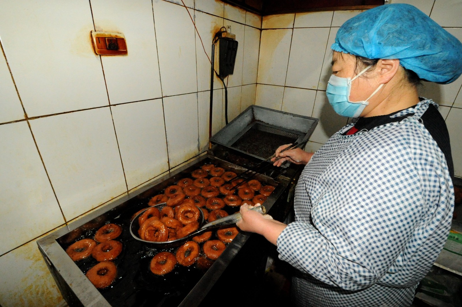 那时,寿阳漫山遍野都是柿子树。柿子成熟之际,吃上一口,如吮蜜吸糖一般清凉爽心。“老寿星”从小嗜柿如命,直把柿子当饭吃。每年冬初,“老寿星”爹妈就把柿子摘下,用绳子串起,挂在窑里,供“老寿星”吃,一直吃到来年柿子下树,日子久,“老寿星”因吃柿子身体强壮起来,最后成了长寿不老的“寿星”。“老寿星”得道成仙,飞升天界,极少回寿阳老家。而乡亲们想他盼他,逢年过节,便拿串质好的柿子供他。后来,寿阳渐渐成了“春晚无花秋早霜”的高寒地带,柿树也纷纷迁居盂县、平山。寿阳百姓没有柿子来供奉“老寿星”,一“小寿星”就教大伙儿用红糖稀把面和起来,捏成柿状,用油炸熟,拿绳串起来,供献“老寿星”。从此,“油柿子”便成了祭扫的高档供品,寿阳人称“大供”。