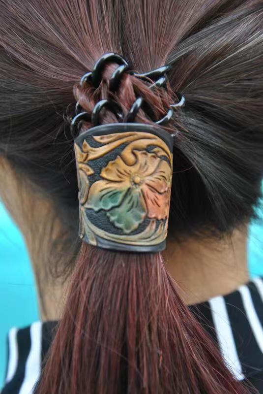 皮革经过对立体装裱后的造型线条进行精琢,使图案产生特有的浮雕效果,画面随内容需要跌宕起伏,与浓郁的色彩相得益彰。