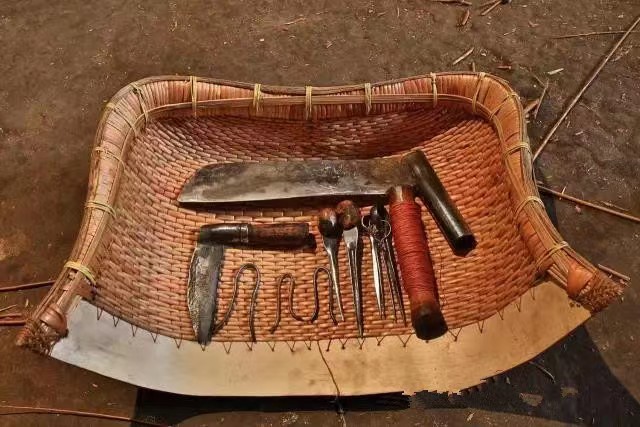 4、编织。按照一定的形状和规格进行。所有工具有:铁签、果枝剪、尺子等。